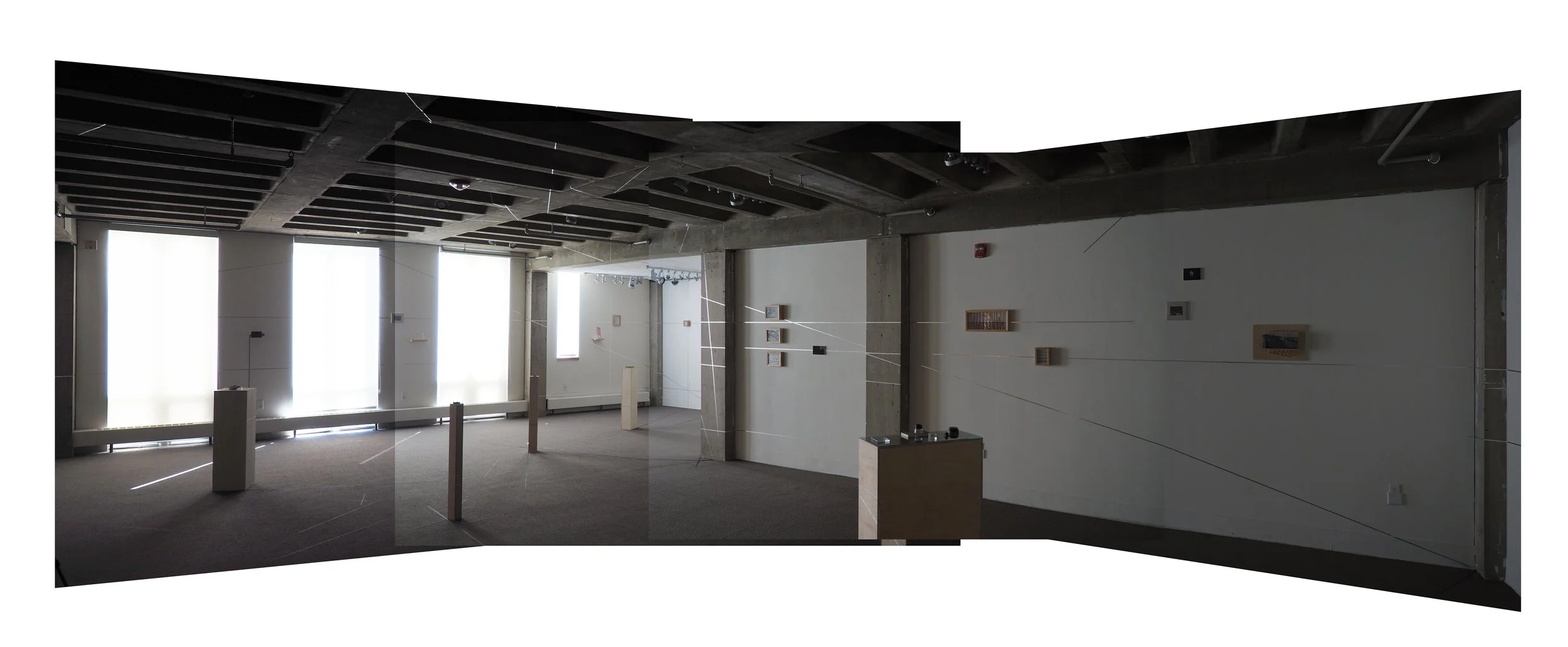 In collaboration with Alex Wenstrup, at Chazan Gallery in Providence, RI. Site- specific, multi-channel installation exploring the interrelation of mapping projection techniques with alchemical material experimentation. Various small wall pieces and objects on pedestals were installed with a network of projected lines, made with aluminum tape applied directly to the galleries walls, floors, and ceilings. Each individual piece presented a fragment of a “mapped space” that, positioned in the installation, became a projection of the world beyond the gallery’s walls.
